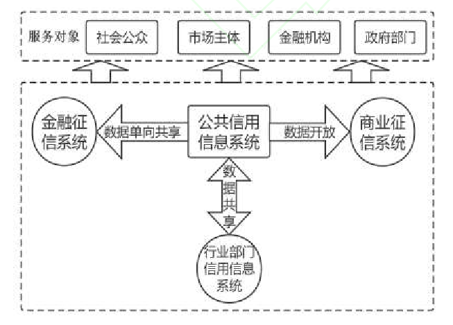 在系统对接层面不同的信用信息系统平台的功能设置逐步融合。比如传统的公共信用信息系统和信用门户网站主要提供公共信用信息查询、信息公示、信用奖惩、信息核查等服务而依托信用信息共享应用来促进中小微企业融资的工作部署要求公共信用信息系统的功能拓展到金融服务领域通过深化信用信息应用为金融机构提供征信服务。