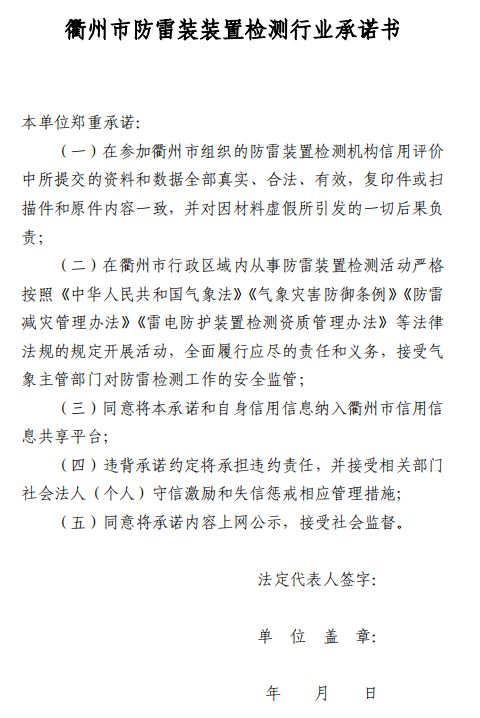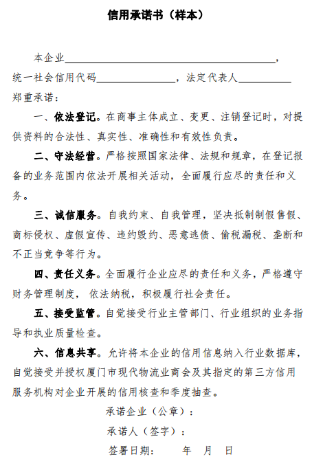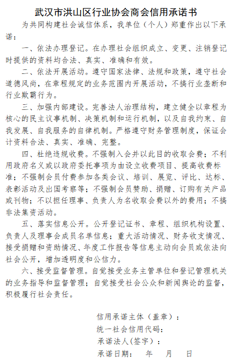 行业类信用承诺书