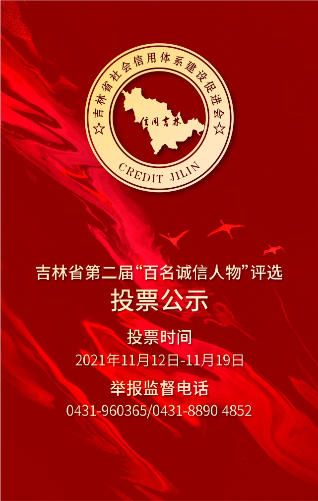 吉林省第二届“百名诚信人物”评选网络投票通道开启!