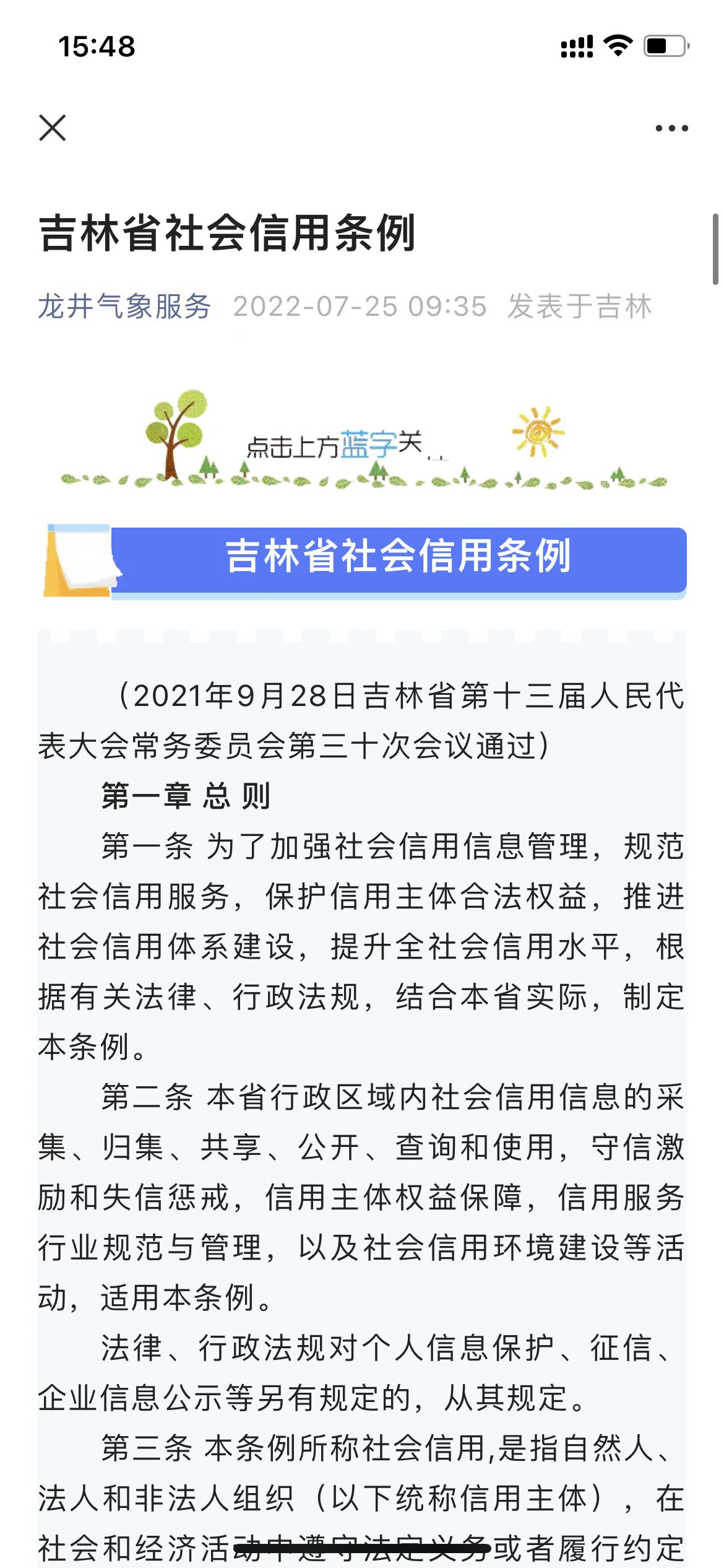 为贯彻落实《2022 年吉林省城市信用监测提升实施方案》的文件要求,推进我市信用体系建设工作,营造良好的诚信氛围,近日,龙井市气象局利用LED电子显示屏、微信公众号等多种形式面向社会开展诚信宣传教育。通过宣传《吉林省社会信用条例》和诚信宣传口号,增强公众崇信倡信、守信立信观念,引领带动全体公民讲诚信、守信用,营造风清气正的干事创业环境。